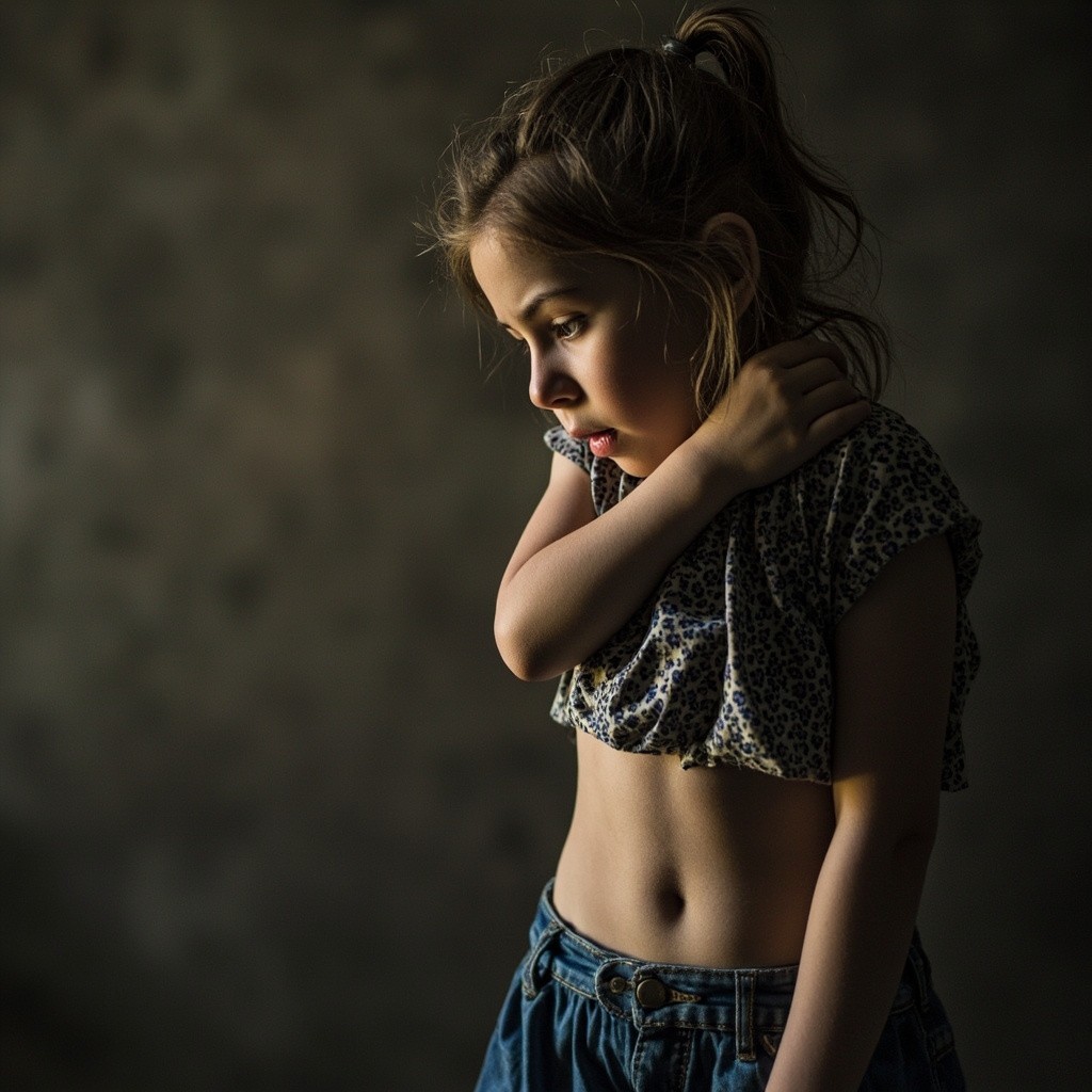 Teenage Girl with Stomach Grumbling