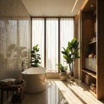 Spa-Inspired Bathroom with Freestanding Bathtub and Wooden Accents