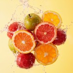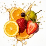 Juicy Composition Surrounded by Droplets, Summer Freshness