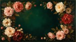 Victorian Style Floral Painting with Dark Green Background and Empty Center
