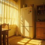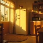 Retro Interior Scene with Straw Mat and Old-Fashioned Fridge