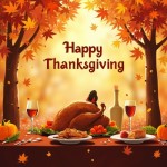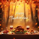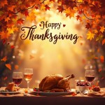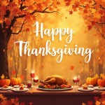 Festive Thanksgiving Dinner Table with Turkey and Autumn Leaves