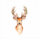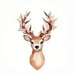 Watercolor Hand-Painted Plum Deer With Floral Antlers