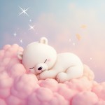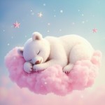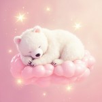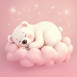 Sleeping White Bear on Pink Cloud with Shining Sparkles