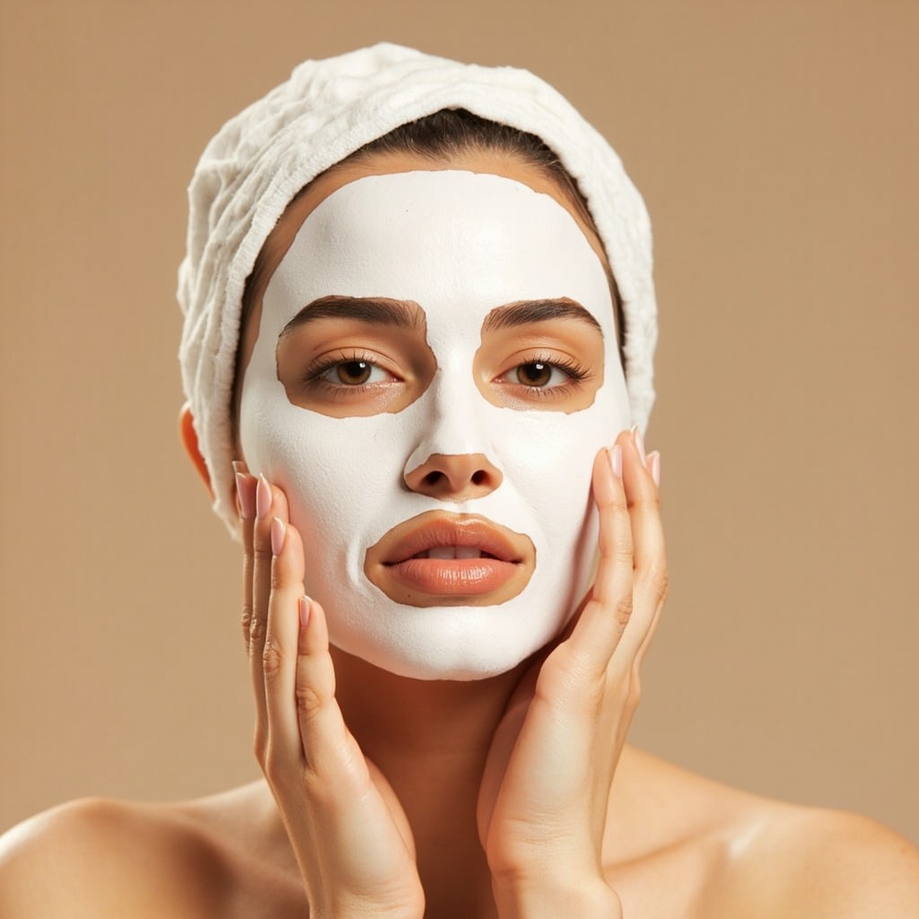 3D Image of Woman Applying Skincare Mask