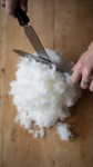 Hand-Cut Fluffy White Cloud on Wooden Surface