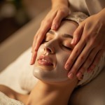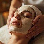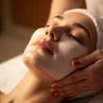 Woman Receiving Facial Massage Close-Up, Minimalist Spa Background