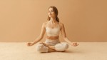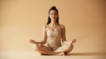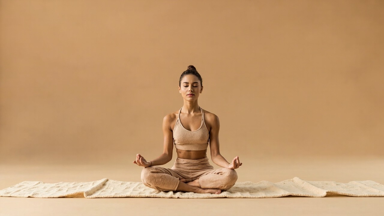 Meditating Woman in Lotus Position with Natural Sandstone Beige Tones