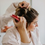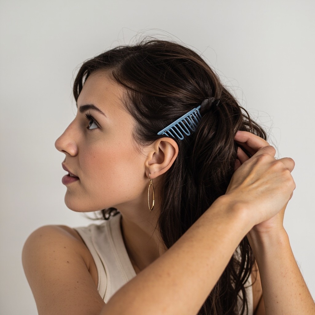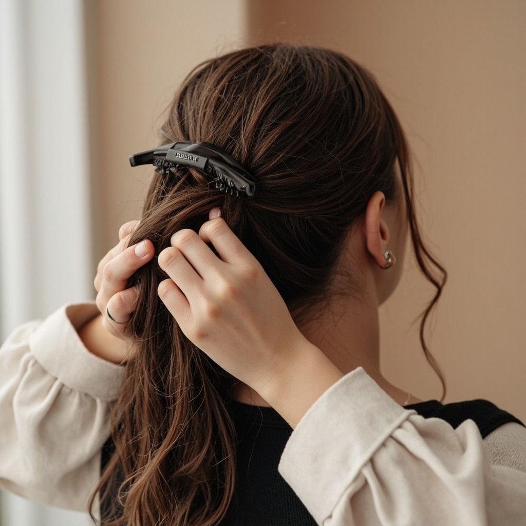 Woman Tying Hair with Claw Clip