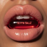 A Woman's Lips Holding a Red Oblong Pill