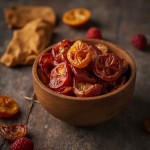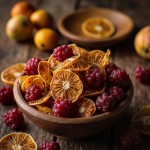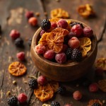 Rustic Flatlay of Dried Fruits in Wooden Bowl