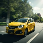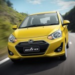 Yellow Honda Brio Driving