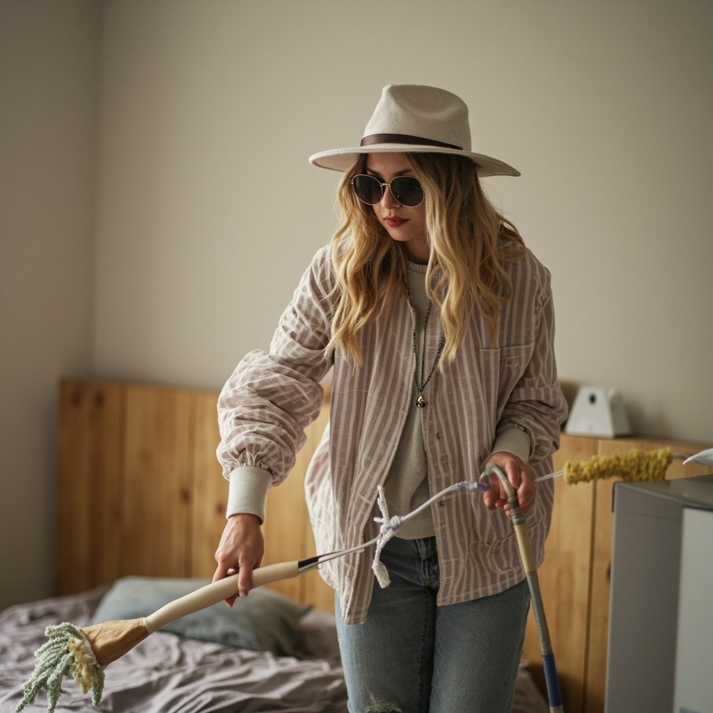 Young Woman Cleaning Room