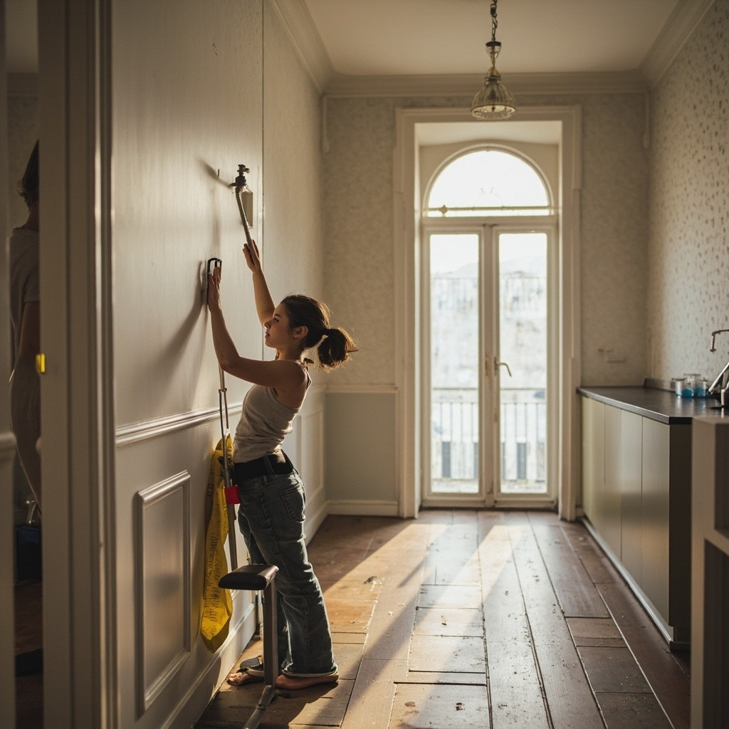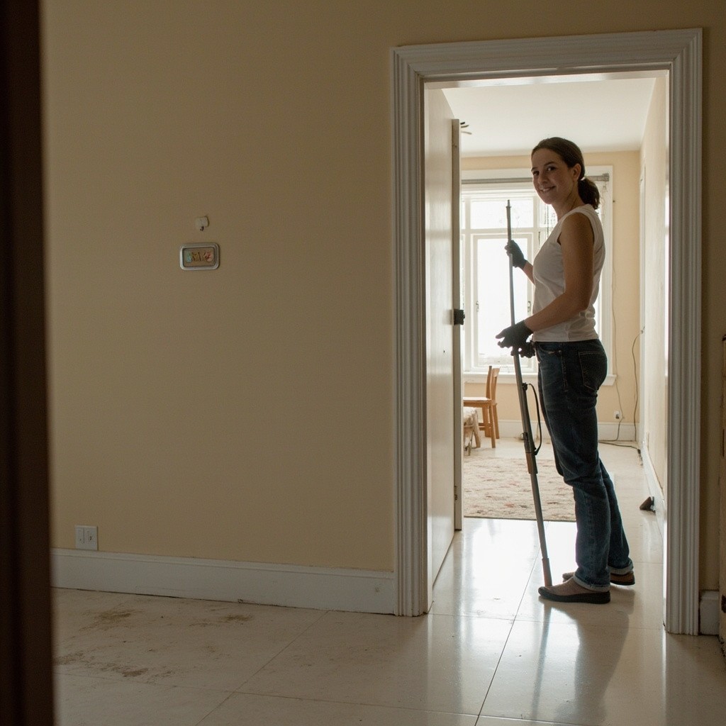 Young Woman Cleaning Big House