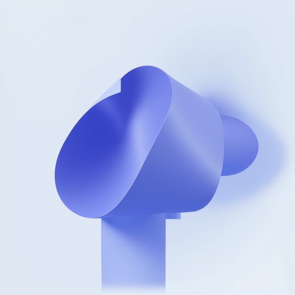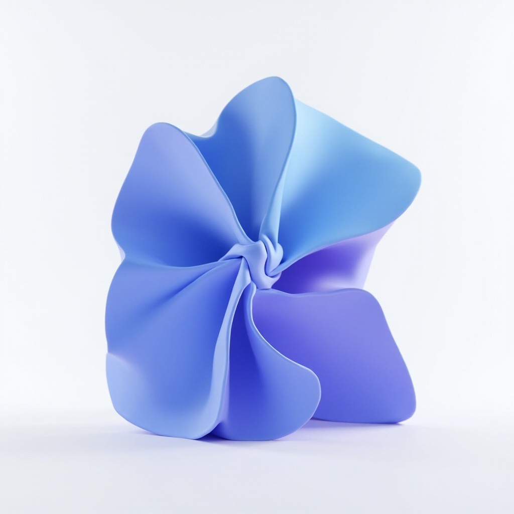 Abstract 3D Blue-Violet Sculpture on White Minimal Background