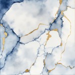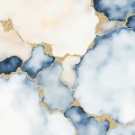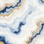 Top View Watercolor Painting of Abstract White and Blue Geode Pattern