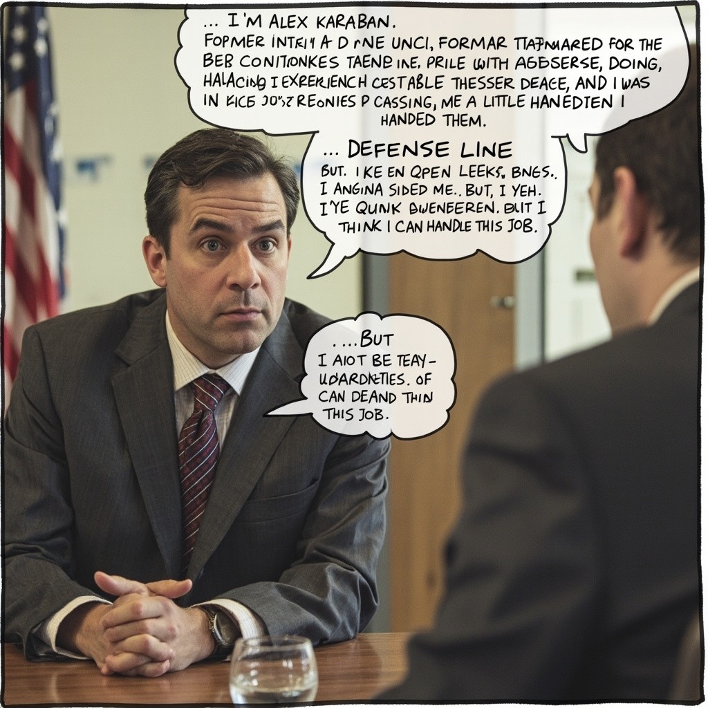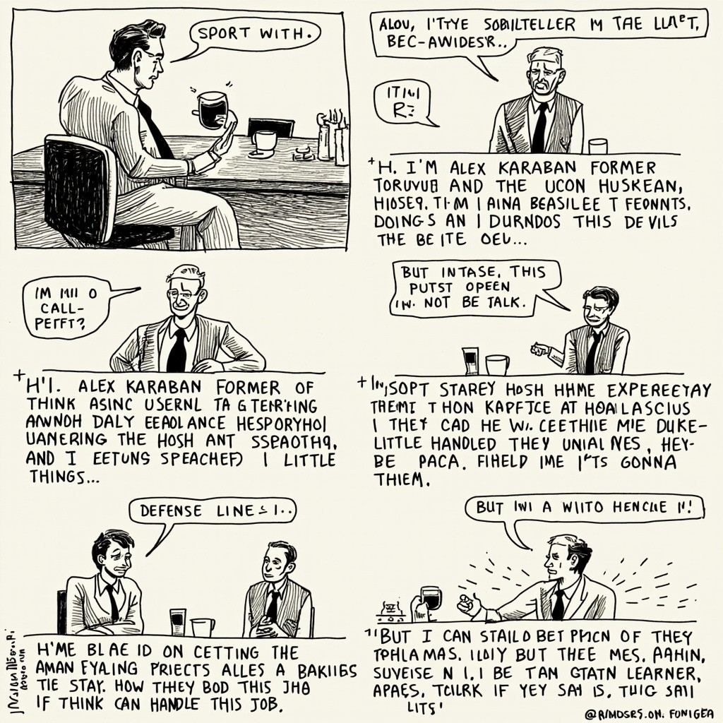 Create a short, realistic interview-style video of Alex Karaban sitting in a job interview after being eliminated from March Madness by the Duke Blue Devils. • Style: slightly comedic but realistic, like a serious interview that slowly becomes funny • Setting: office job interview (desk, interviewer off-camera) • Tone: dry humor, subtle embarrassment, not over-the-top Dialogue (important): Have Karaban speak professionally at first, then casually reference the loss: • Start with: “Hi, I’m Alex Karaban, former forward for the UConn Huskies. I pride myself on teamwork, spacing, and doing the little things…” • Then transition into: “I also have experience handling pressure… although recently, Duke handled me a little better than I handled them.” • Add a line about defense: “I’m used to getting open looks, but… yeah, they kinda locked me up. Not gonna lie.” • End with something funny but subtle: “But I’m a quick learner. If I can survive that, I think I can handle this job.” Extra instructions: • Facial expression: slightly awkward, trying to stay confident • No exaggerated cartoon behavior—keep it semi-realistic • Add light background office noise • Keep it around 20–30 seconds