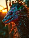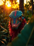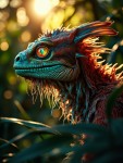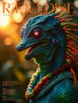 Alien Cyborg-Lizard-Mandrill Magazine Cover with Abstract Face Painting, Jungle Sunset