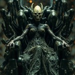 Alien Queen on Biomechanical Throne, Surreal Textures, Sci-Fi Horror