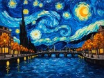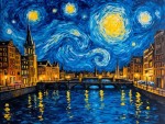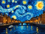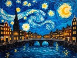 Amsterdam Skyline and Canals in Vibrant Blues and Yellows