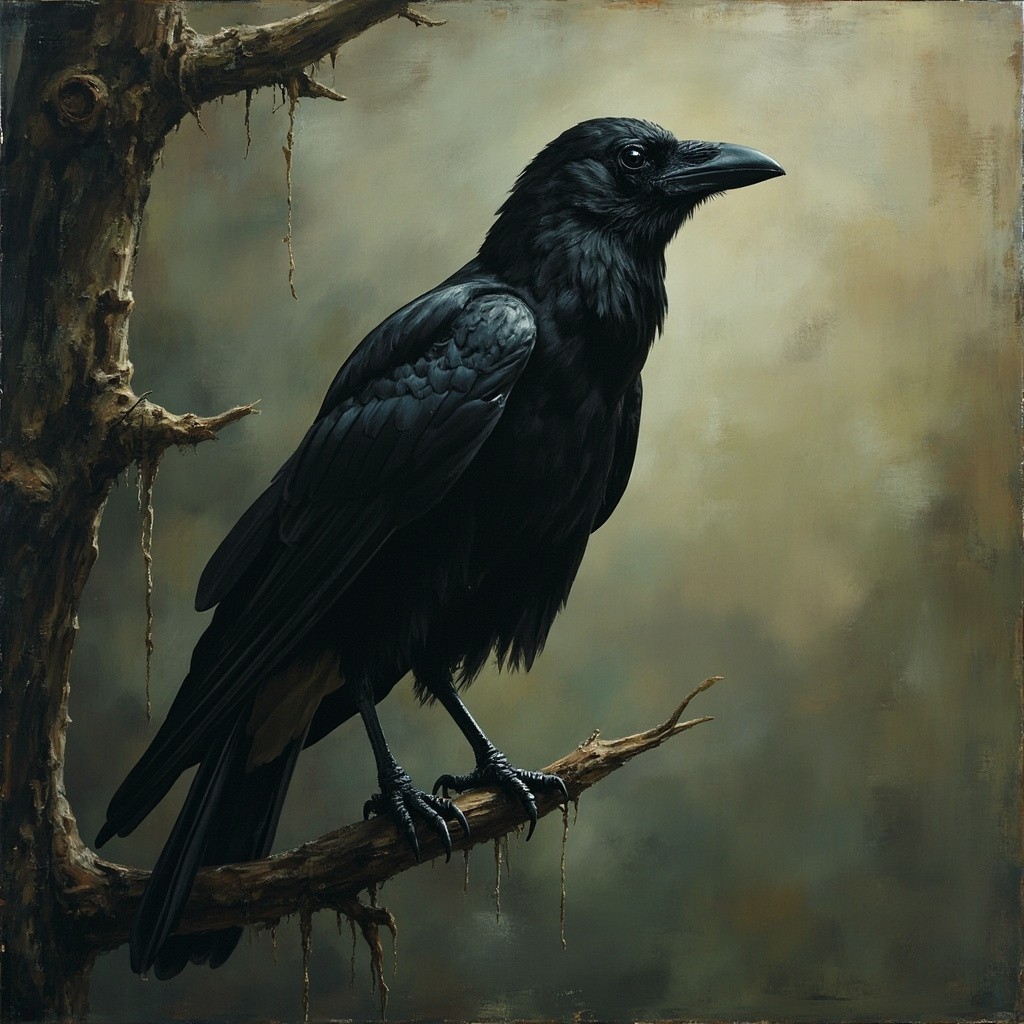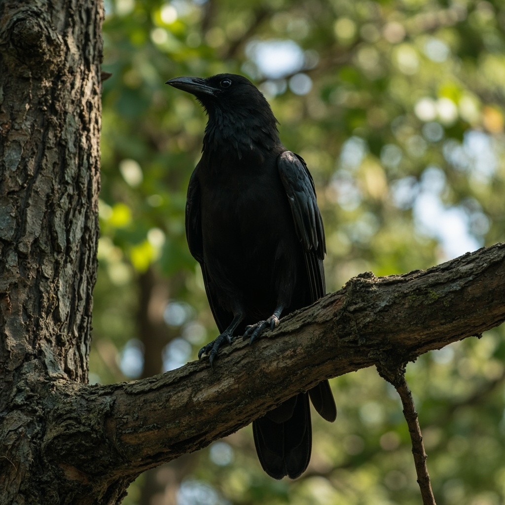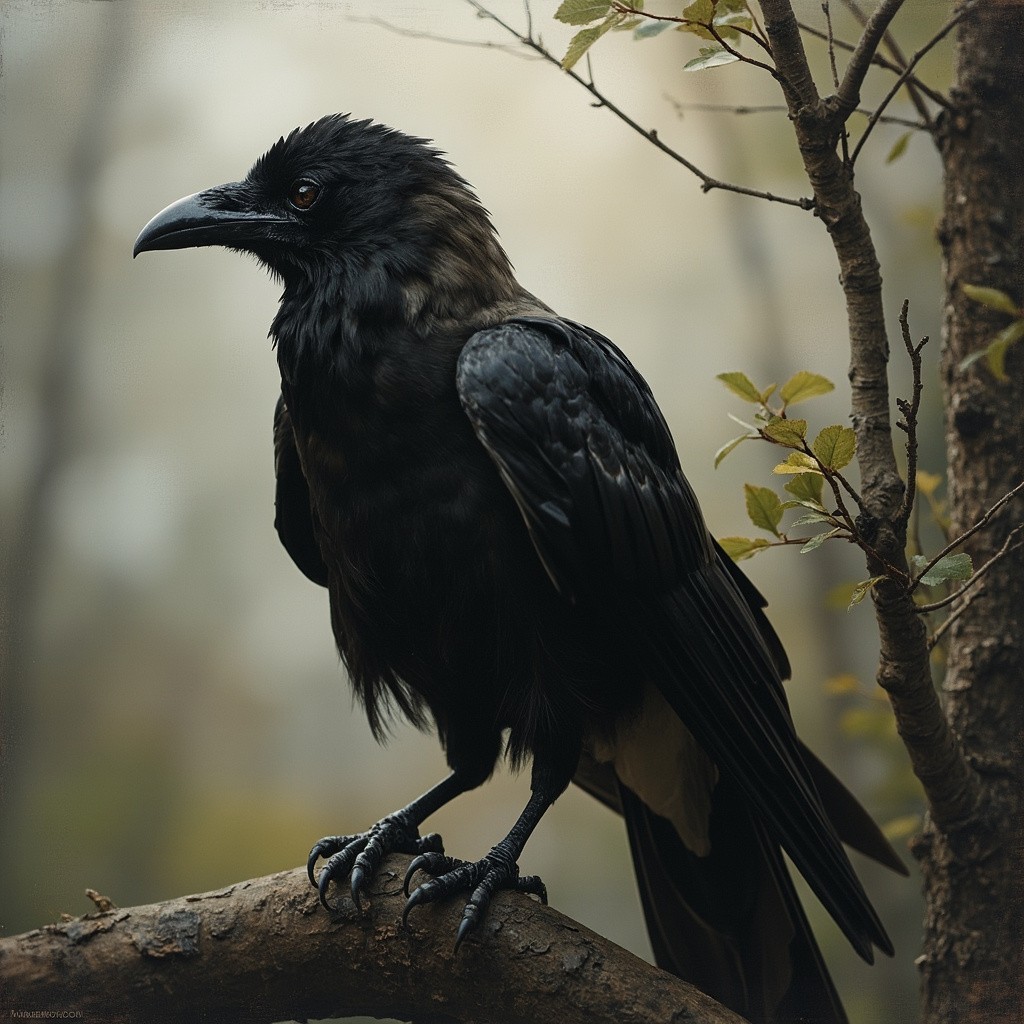 Albino Crow Sitting on Tree
