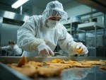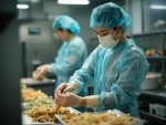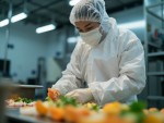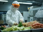 Asian Person Making Food in Hygienic Suit at a Food Factory