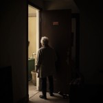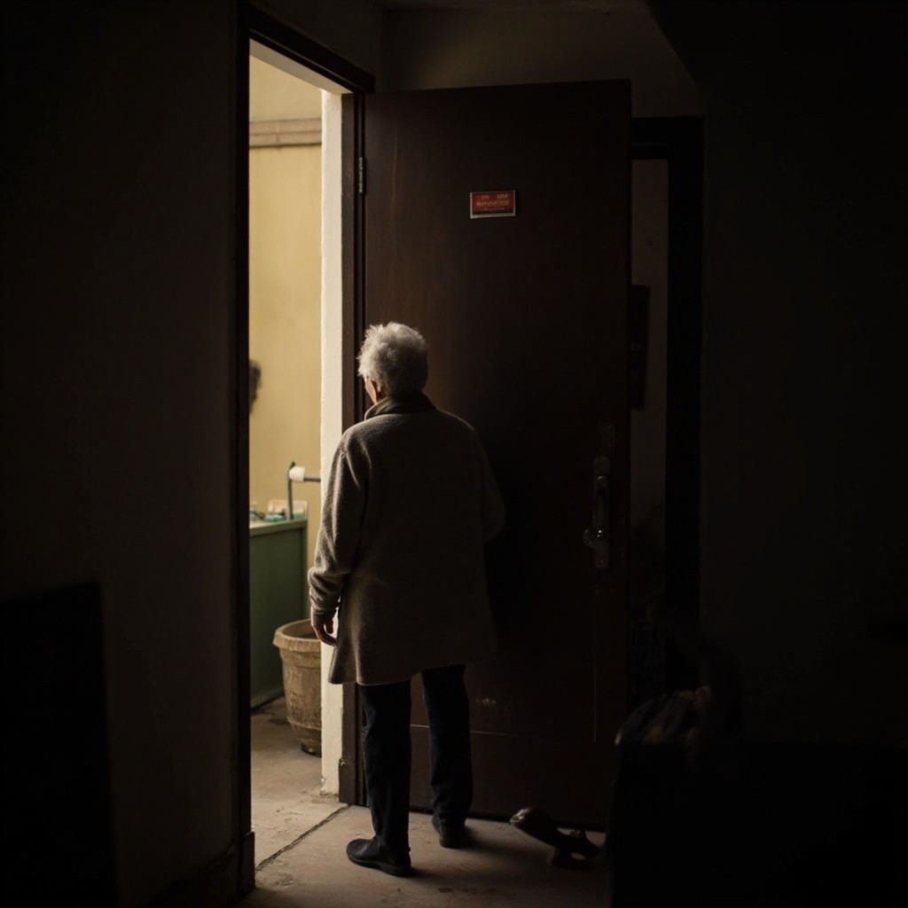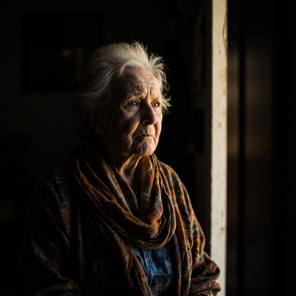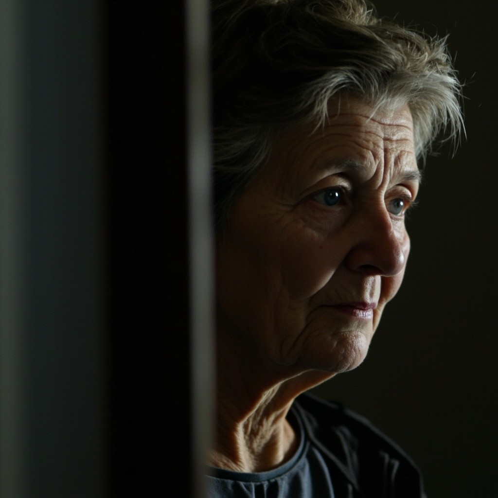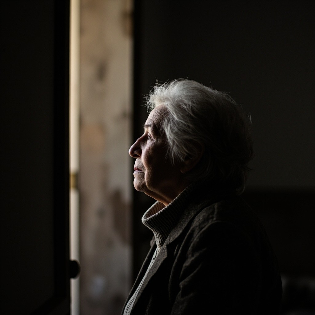 Elderly Woman Waiting at Door in Soft Light