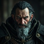 Elderly Knight with Deep Black Hair and Malachite Eyes in Noble Clothing