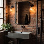 Industrial Bathroom with Exposed Brick Wall and Edison Bulb Lighting