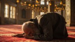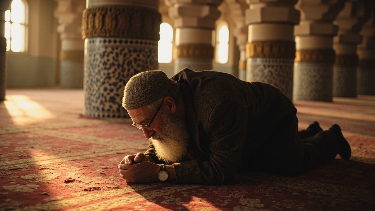 Bearded Elderly Man Praying in Beautiful Mosque