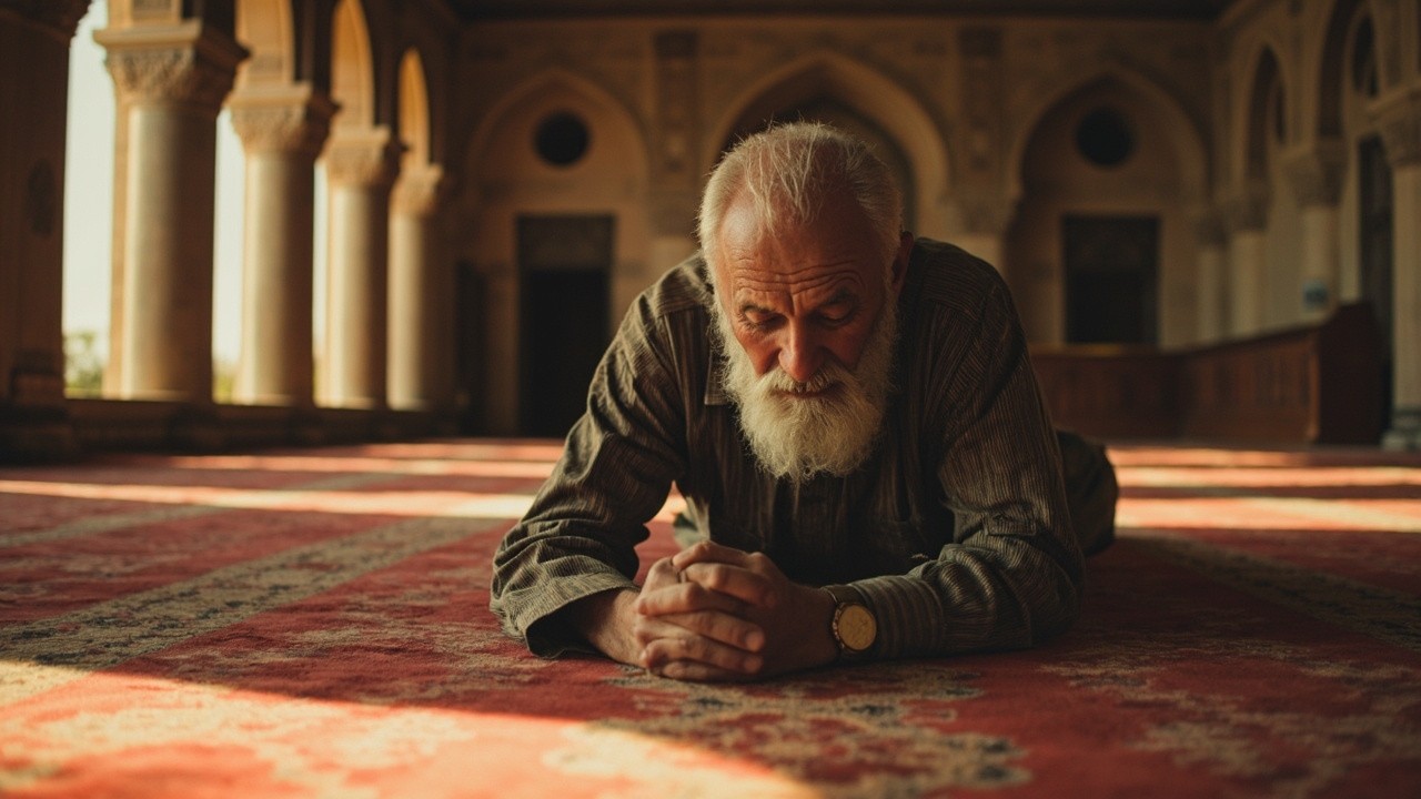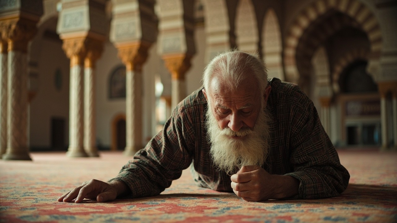 Bearded Elderly Man Praying in Beautiful Mosque