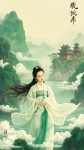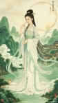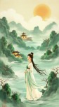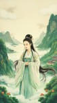 Tranquil Ancient Chinese Girl in Hanfu with Scenic Landscape Background