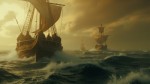 Ancient People Journeying in Ships on Stormy Waters