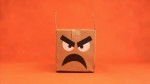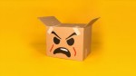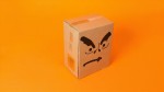 Expressive Cardboard Box with Angry Face on Vivid Background