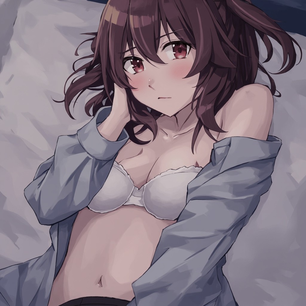Anime Girl Sleeping with Unbuttoned Shirt Illustration