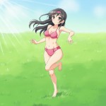 Anime Girl Dancing in Green Field wearing Pink Undergarments