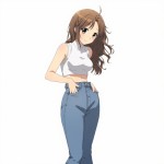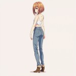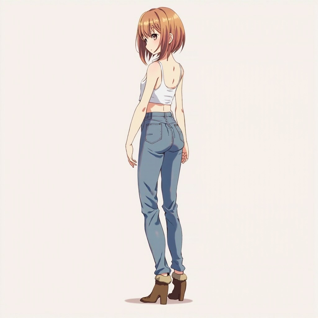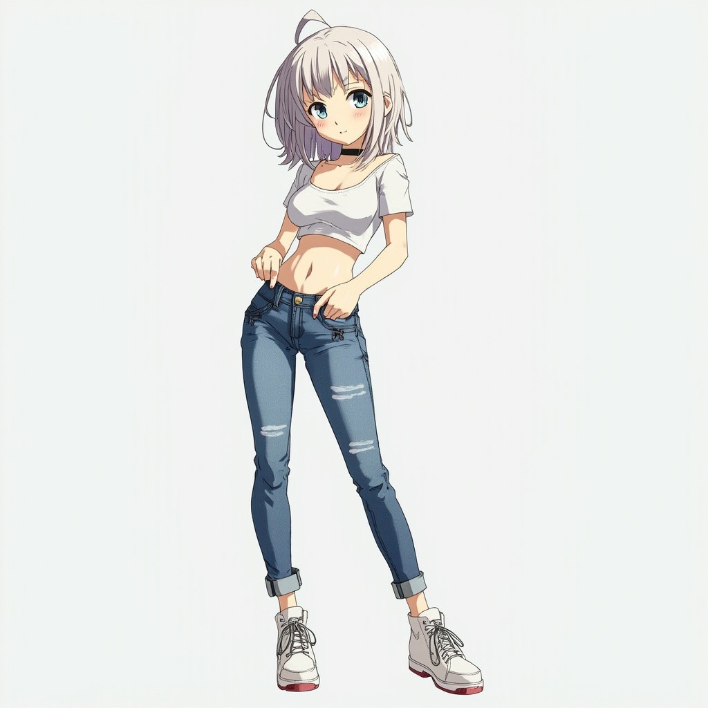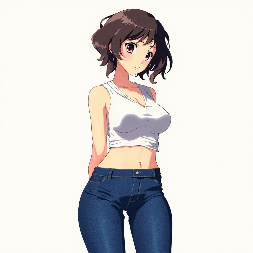 Anime Girl Hinata Full Body with White Top and Jeans