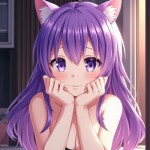Anime Girl with Purple Hair and Neko Ears, Censored