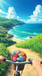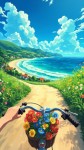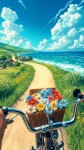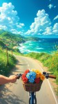 Anime-Style Coastal Bike Ride with Flower Basket View