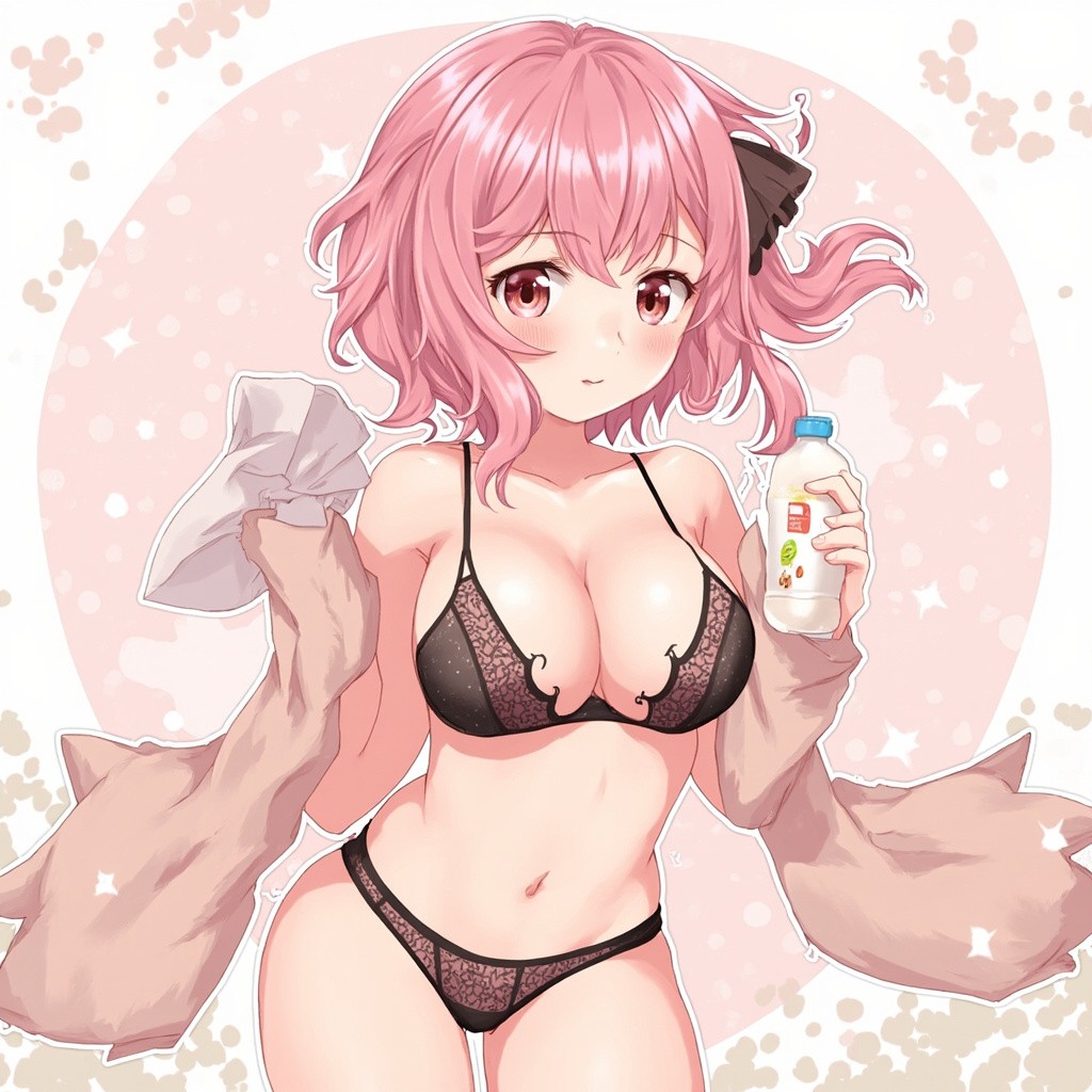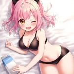 Anime Girl in Bra and Panty, Pink Hair
