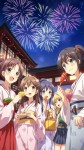 Summer Festival Fireworks with Yukata-Wearing Anime Teens