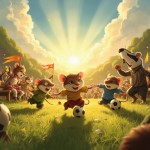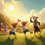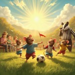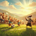 Joyful Rat Children Playing Football On Sunny Field with Cheering Parents and Referee Badger Illustration