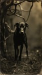 19th Century Daguerreotype Photo of Black Dog in Ancient Forest