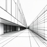 Monochrome Architectural Rendering of Modern Building in Linear Perspective