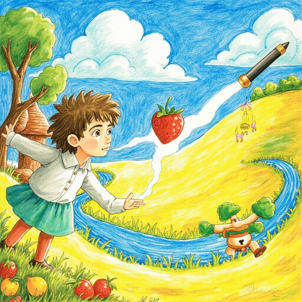 एक छोटे से गाँव में आर्यन नाम का लड़का रहता था, जिसके पास जादुई कलम थी। वह जो भी चित्र बनाता, वह सच हो जाता था। गाँव में सूखा पड़ा तो उसने नीली कलम से विशाल बादल और नदियाँ बना दीं। भूख से तड़पते लोगों के लिए उसने सुनहरे खेत और फलों के बाग उकेरे। लालची जमींदार ने कलम छीननी चाही, तो आर्यन ने एक पिंजरा बनाकर उसे कैद कर दिया। अंत में, पूरा गाँव खुशहाल हो गया और सबने मिलकर जश्न मनाया। यह कहानी सिखाती है कि कला और भलाई हमेशा बुराई पर जीत हासिल करती है।