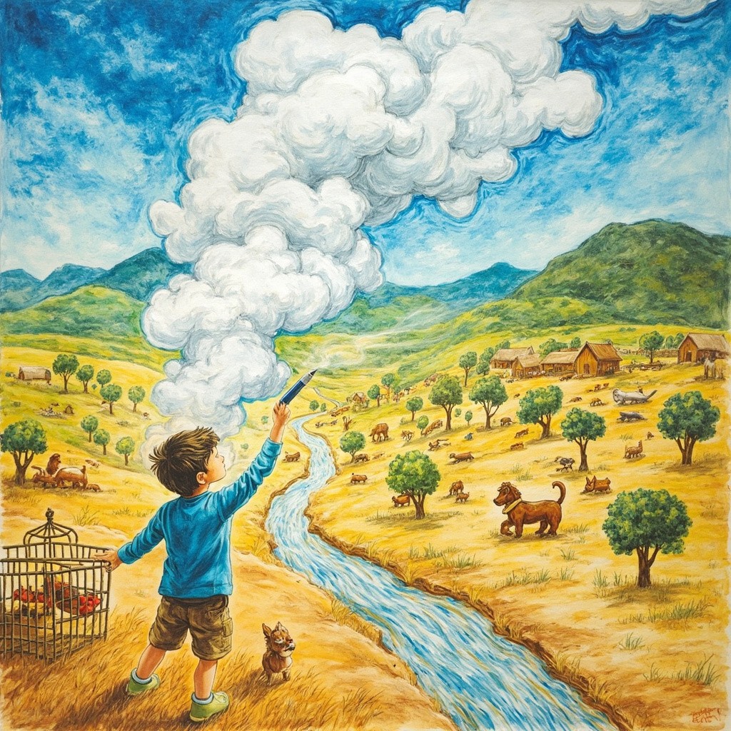 Boy Named Aryan with Magical Pen in a Small Village