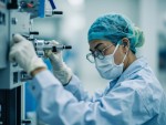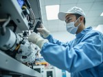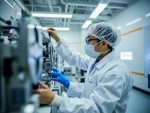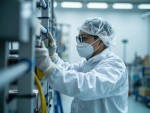 Asian Technician Working on Equipment in Cleanroom Facility