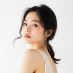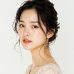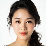 Asian Woman with Soft Hair on White Background