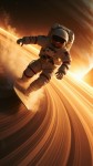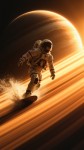 Astronaut Surfing on Glowing Rings of Jupiter, Dramatic Lighting