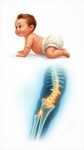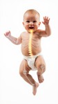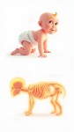 Crawling Baby Transitioning to Animated X-Ray, Glowing Bones, Educational Style